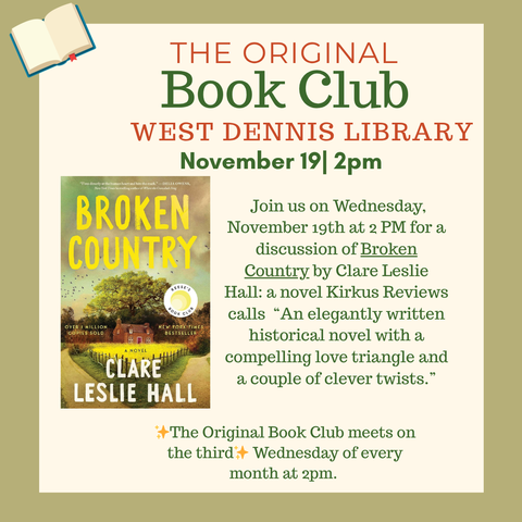 We’re diving into Broken Country by Claire Leslie Hall this month, a thriller that has been compared to Where the Crawdads Sing by Delia Owens, and The Paper Palace by Miranda Cowley Heller. The Original Book Club meets on the third Wednesday of every month at 2pm.New members are always welcome and copies are available at the front desk.