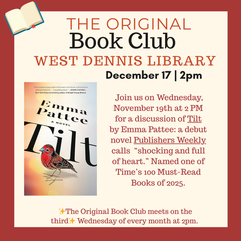 Who doesn’t love discovering a new author? Join us this month for a discussion of Tilt, Emma Pattee’s gripping and atmospheric debut novel. This sharp, emotionally rich novel follows a young woman whose world is knocked off balance after a life-altering event, sending her on a journey that blends suspense, introspection, and beautifully crafted prose.